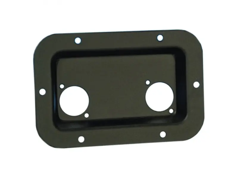 Einbauschale 1 mm Stahl gestanzt für zwei XLR-Buchsen universal oder Neutrik Speakon-Buchse NL4MP.