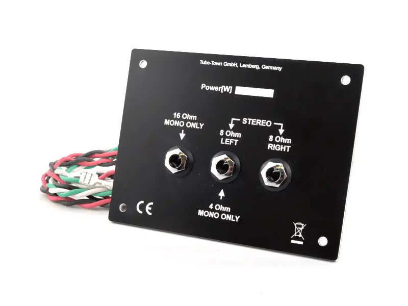 Universal Mono/Stereo Terminal, Ersatz für Marshall Terminal ME-19605000 wie an Marshall 2X12 oder 4X12 Boxen verwendet. Lochabstand identisch, Anschlussmöglichkeiten erweitert. Für die Verwendung in einer 4X12 ist ein zusätzlicher Kabelsatz notwendig um jeweils zwei Lautsprecher parallel zu verkabeln. Siehe Zubehörliste.