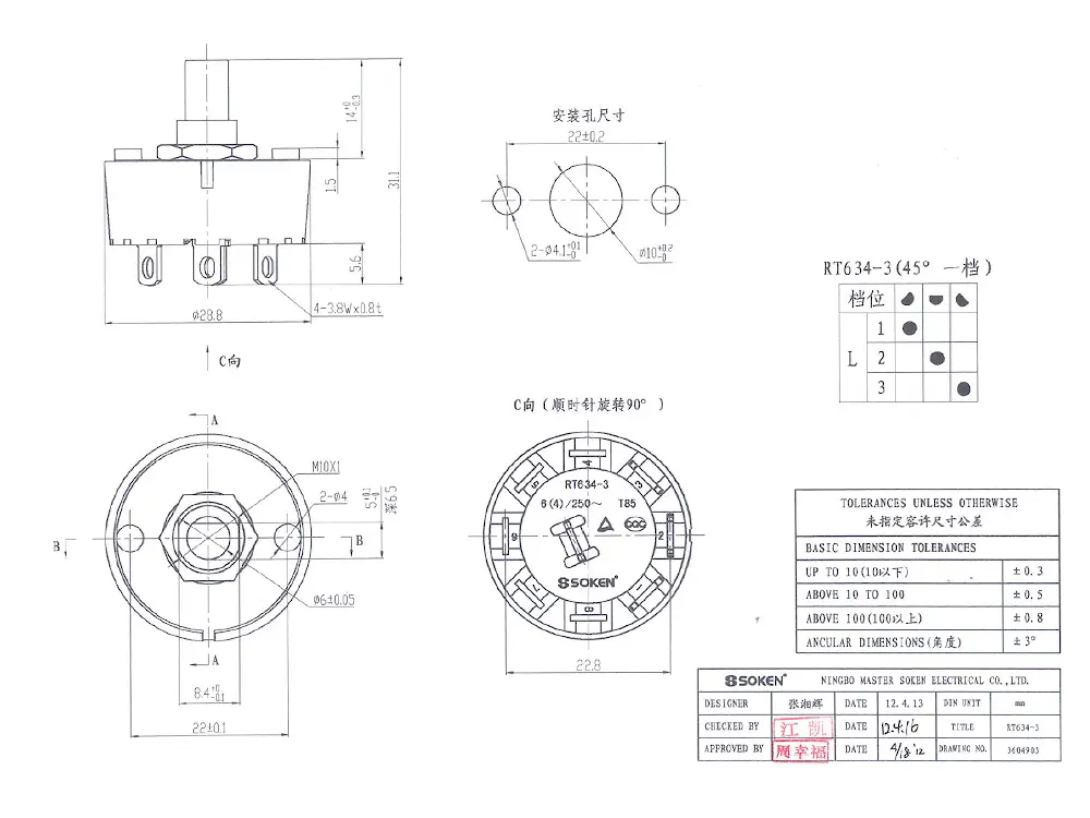 Drehschalter 1-Pol / 3-Pos - 4 A@250VAC - Impedanzwahlschalter