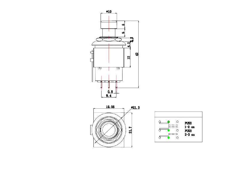 - Schaltleistung: 2A / 250VA, 4A / 125VAC