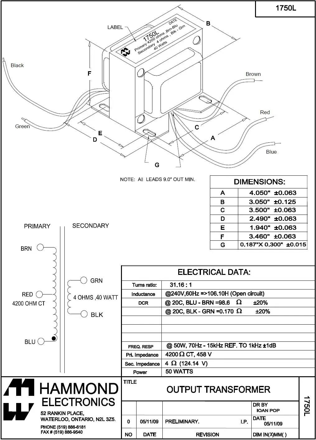 Startseite » Bauteile » Transformatoren » Ausgangsübertrager » Fender » Hammond 1750L für Fender Übertrager 125A13A / 022871 Bassman