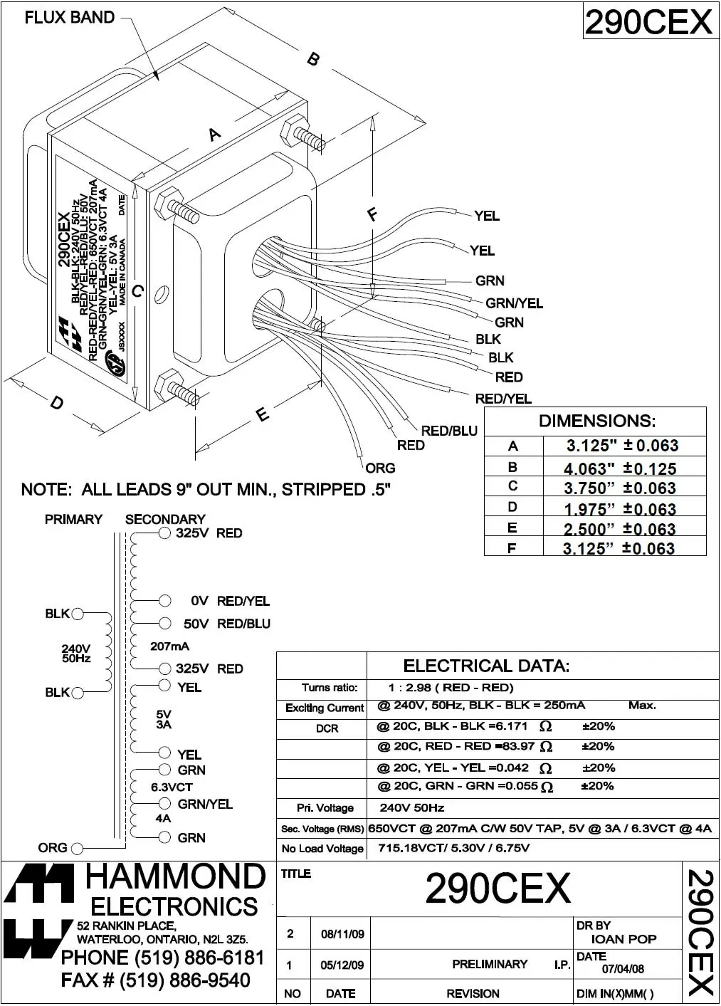 Startseite » Bauteile » Transformatoren » Netztrafos » Fender » Hammond 290CEX für Fender Power 125P26A Vibrolux