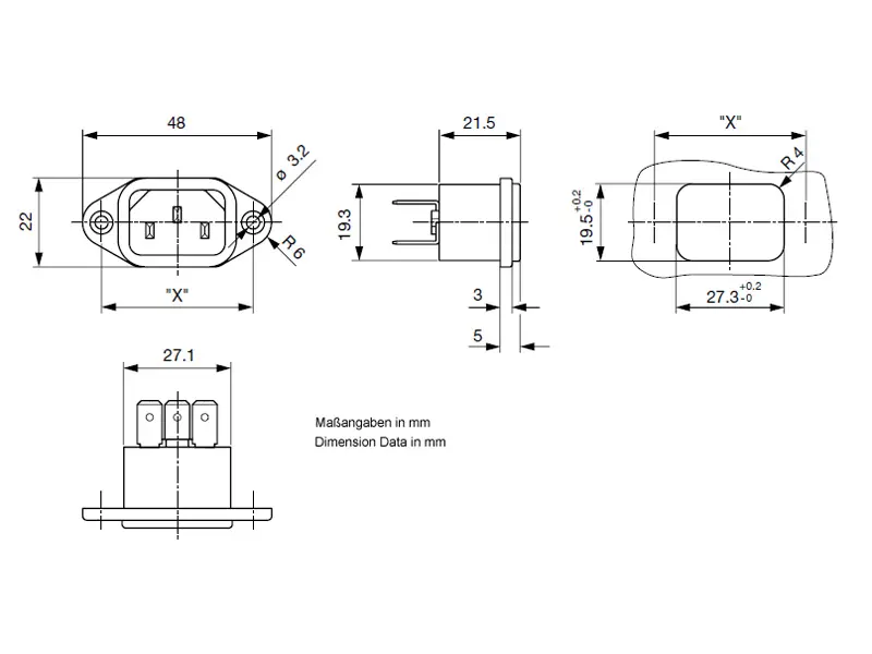 Kaltgeräteeinbaubuchse, Chassis-Montage