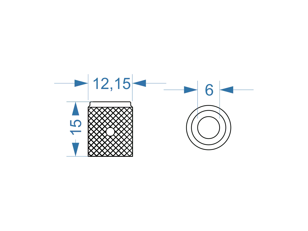 Knopf Aluminium schwarz, 12 x 15,4 mm