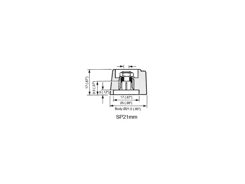 Knopf Soldano Stil mit Flügel, kurz, 21 mm