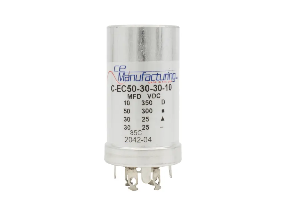Von CE Manufacturing USA hergestellter Multisektions-Kondensator. Reproduziert nach exakten Mallory-Spezifikationen unter Verwendung der originalen Mallory-Maschinen.