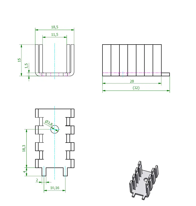Oberfläche: schwarz eloxiert / lötfähige Oberfläche
