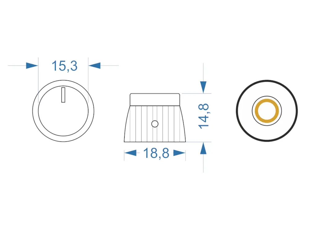 Mit den hier gekauften bin ich optisch sehr zufrieden, bis auf die Kleinigkeit das die Markierung leider nicht genau gegenüber der Madenschraube angebracht sind, so enden die Striche nicht exakt auf den Endpunkten der Potis.