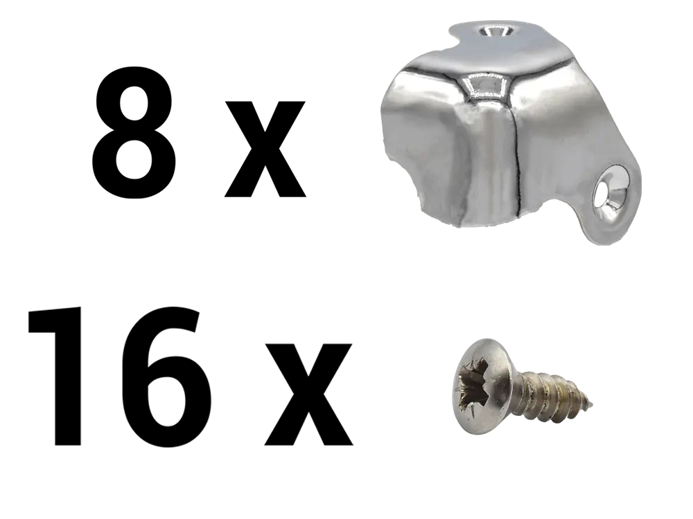 Satz Gehäuseecken, zweischenkelig - Dumble Stil silber inkl. Schraube
