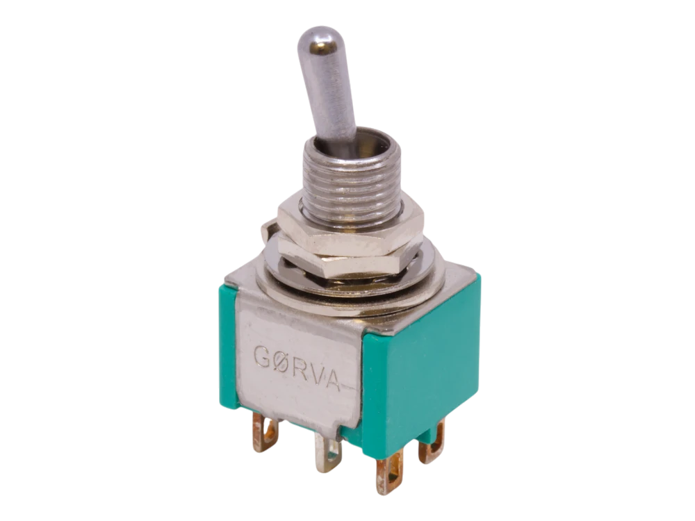 Mini-Kippschalter – GØRVA, DPDT Ein/Ein, Lötösen, mittlerer Hebel