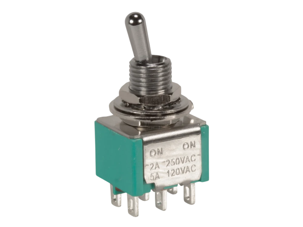 Hochwertige zweistufige DPDT-Mini-Kippschalter von Gorva Design. Die Bascular Mini-Schalter haben eine mittlere Betätigungslänge von 7,5 mm. Diese Schalter verfügen über versilberte Kupferkontakte. RoHS-konform und bleifrei. Montagematerial inklusive.