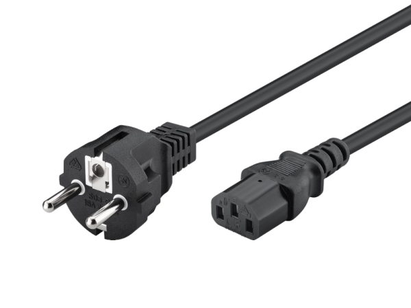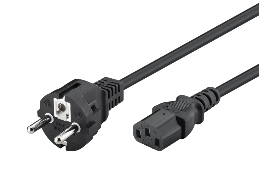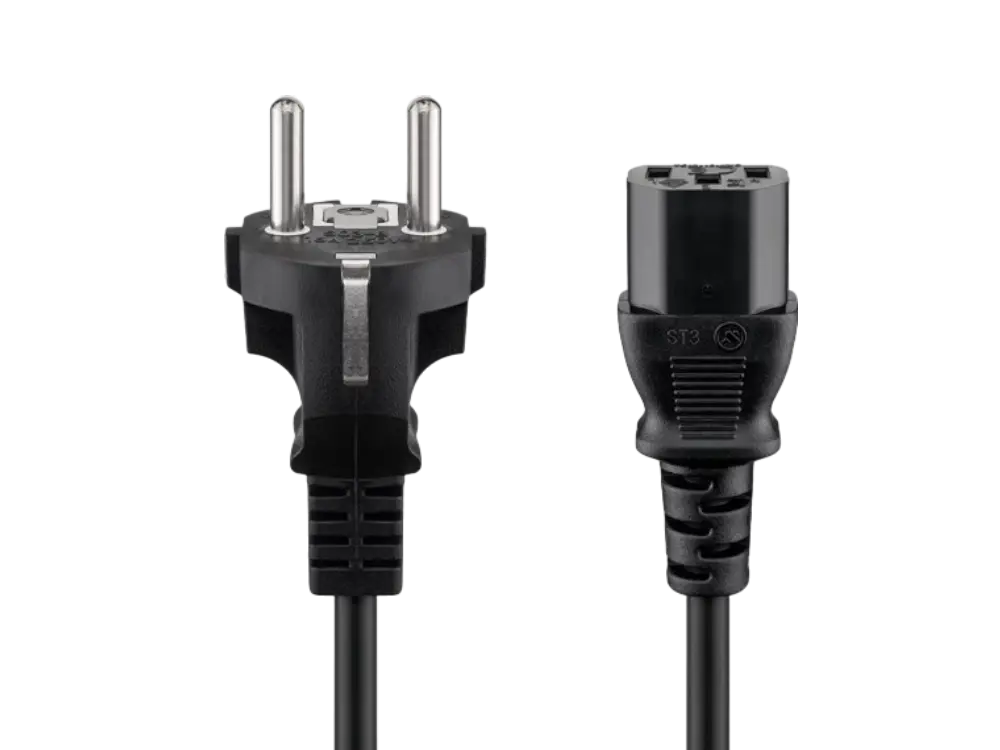 - Anschlüsse: Schutzkontaktstecker (Typ F, CEE 7/7) und Gerätebuchse C13 (Kaltgeräteanschluss)