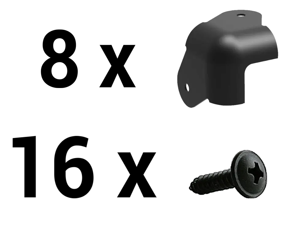 Satz Gehäuseecken - zweischenkelig schwarz, Permium inkl. Schraube