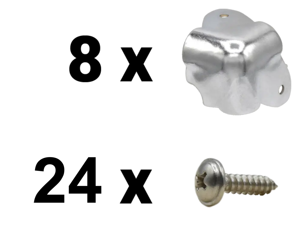 Satz Gehäuseecken, Fender Stil, zweischenkelig - silber matt inkl. Schraube