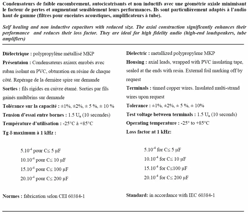 Diese Kondensatoren sind speziell für hohe klangliche Wiedergabe konzipiert.