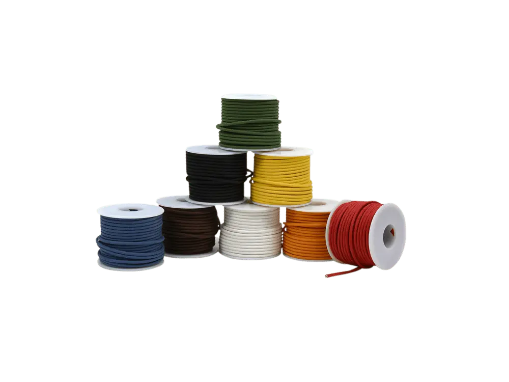 Litze mit Stoffummantelung aus Baumwolle und zusätzlicher Isolation zwischen Stoff und Leiter.