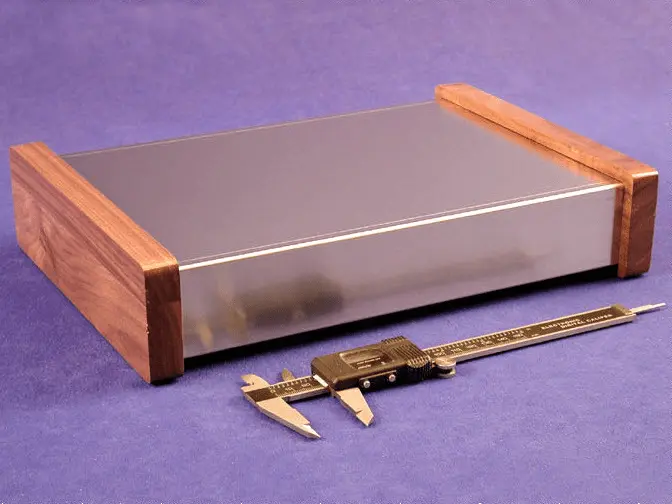 - Usable surface of chassis front, back and top are reduced by roughly 7/8" (22 mm) due to inset in walnut sides.