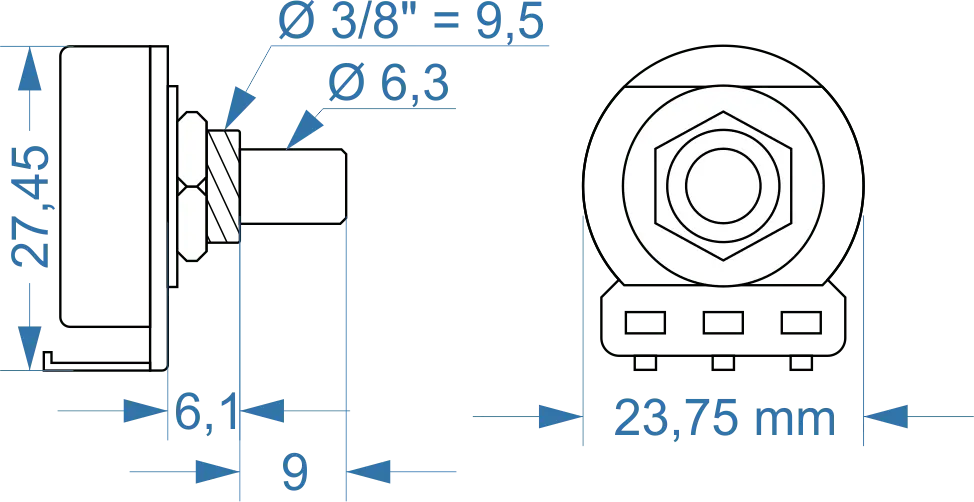 Mobile Preview: CTS Potentiometer 100 kOhm log, Solid Shaft
