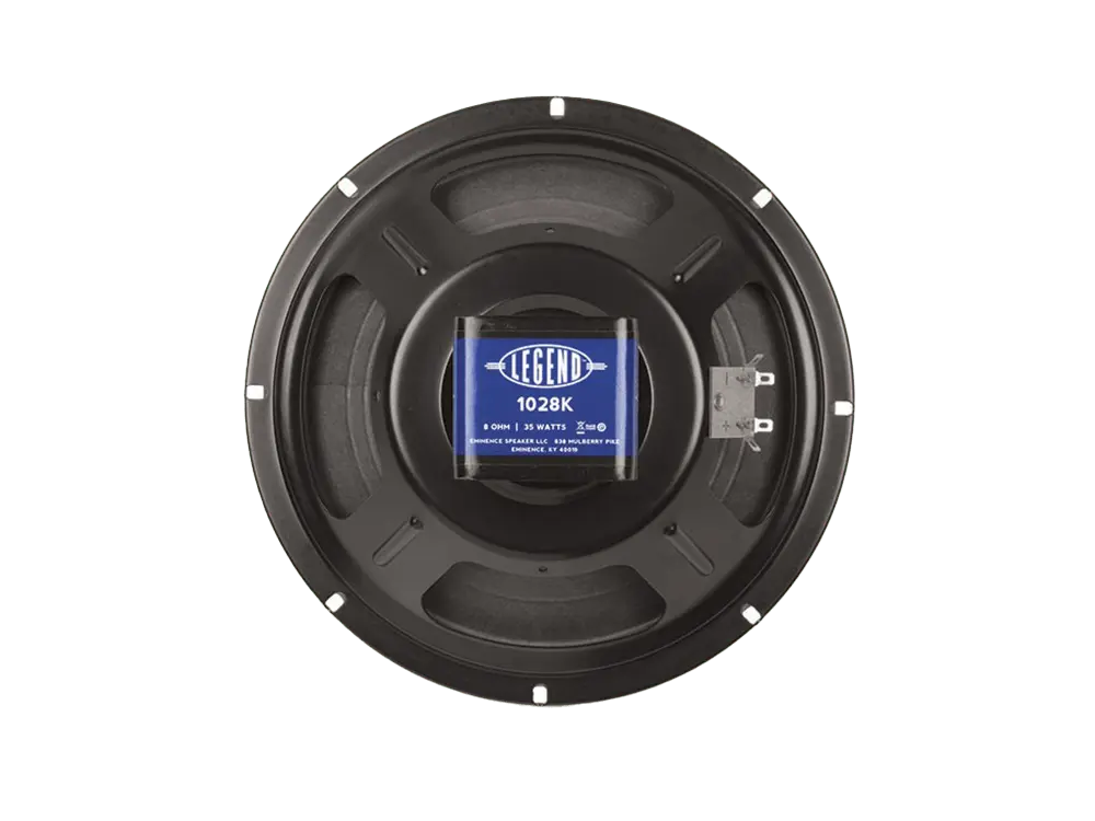 The Eminence Legend 1028K guitar speaker is a classic stage fixture. Vintage American tone with moderate, but tight, percussive lows and extended highs. Hard-working under the bright lights.