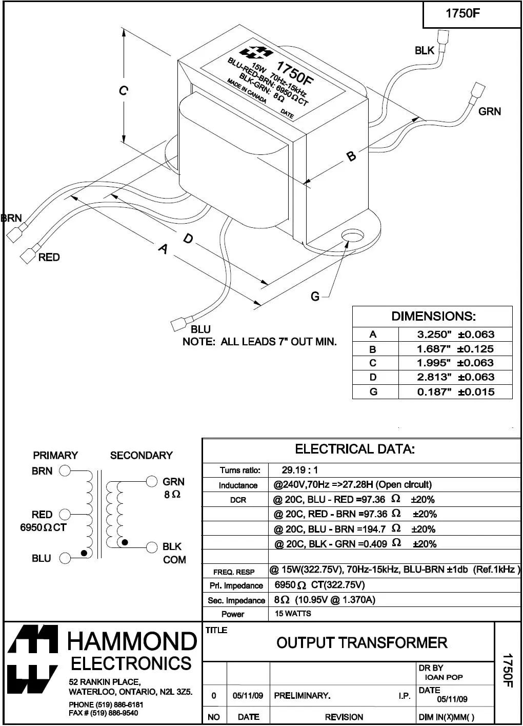 Main page » Components » Transformer » Outputtransformer » Fender » Hammond 1750F for Fender Outputtransformer 049969 Blues Junior