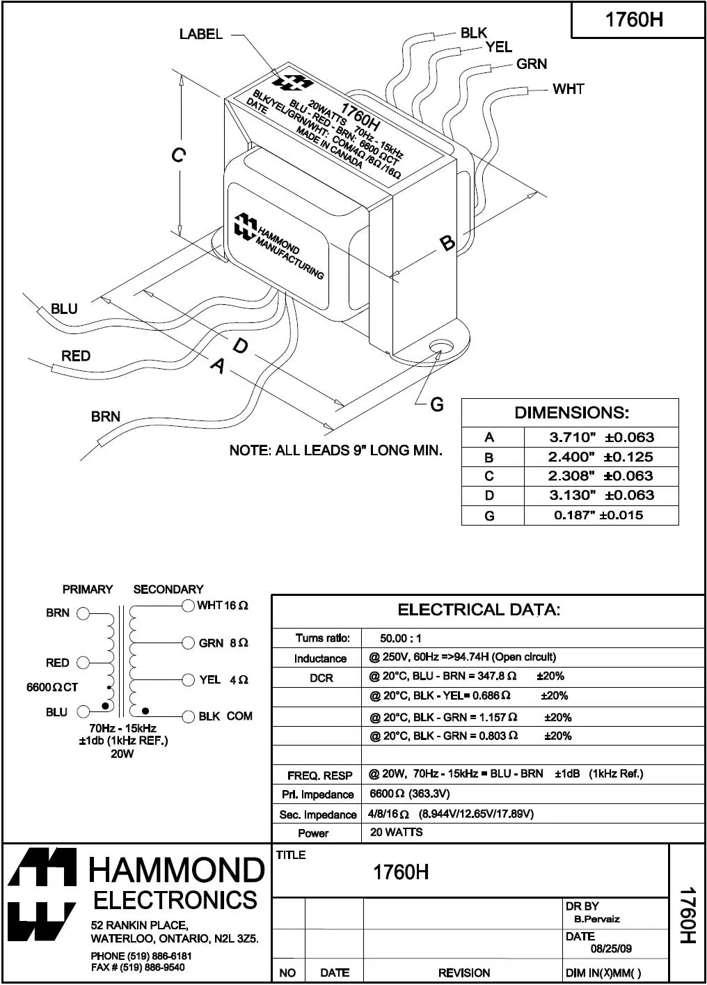 Main page » Components » Transformer » Outputtransformer » Fender » Hammond 1760H for Fender Outputtransformer 125A1A / 022640 UPGRADE Deluxe