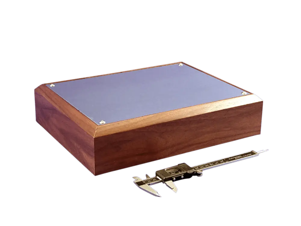 - Top panel is aluminum for easy modification and thick enough to support heavy transformers without bowing - 0.08" (2 mm) thick. Fully "framed" support from walnut chassis
