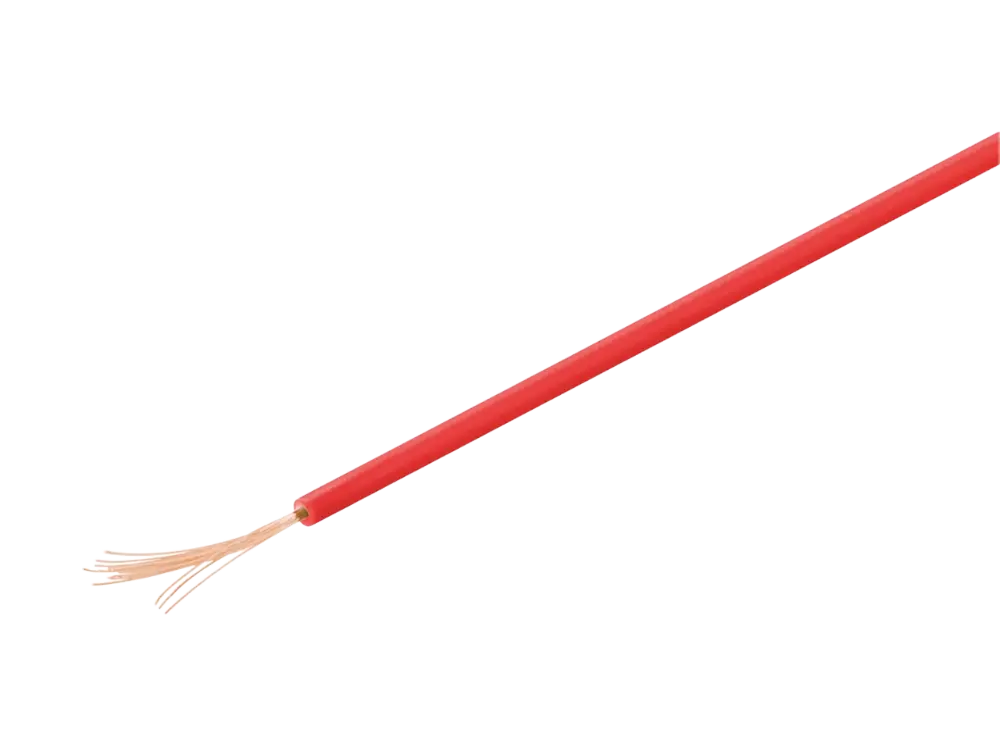 The Hook up wire wire is a single-core multi-stranded copper cable with a conductor cross section of 0.14 mm² (AWG 26) and an outer diameter of 1.1 mm. The wire is insulated with PVC and is particularly suitable for wiring electrical devices or components. It is characterized by excellent heat and cold resistance and can be easily connected with wire end sleeves, spring or screw terminals.