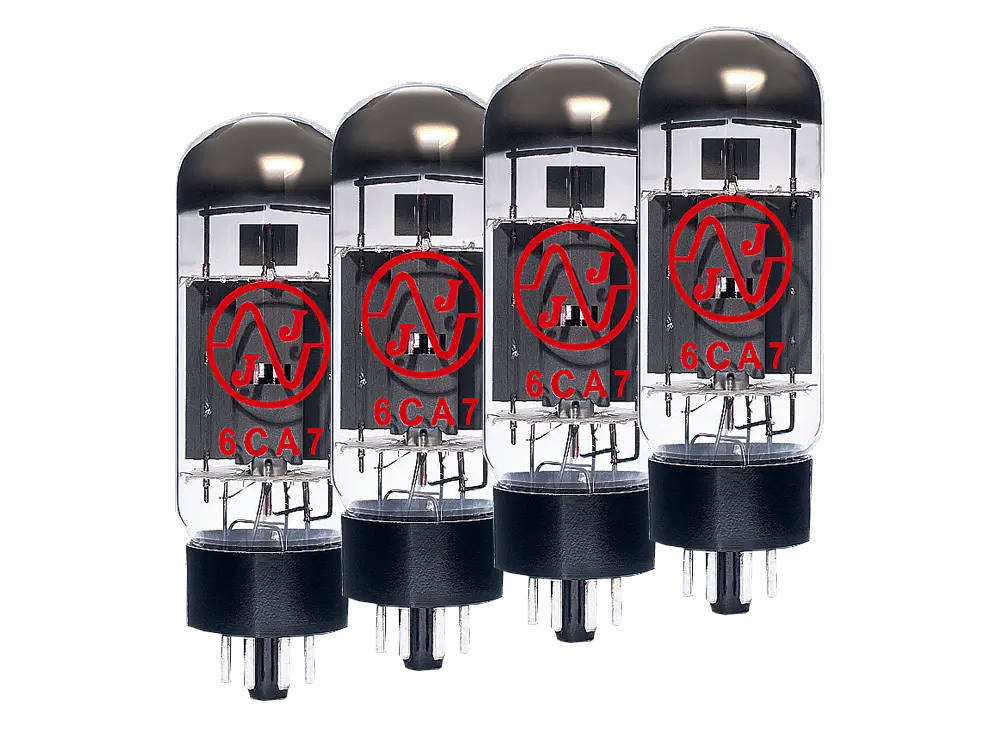 The 6CA7 is a powerful power tube developed in the 1950s by General Electric (USA). It is electrically largely compatible with the European EL34, but more robust in construction and differs in sound behavior. Both tubes are electrically interchangeable. The 6CA7 offers an alternative sound color and more robust operation at high power due to its Beam Tetrode design. Those who prefer more headroom, warmth, and depth in sound often choose the 6CA7.