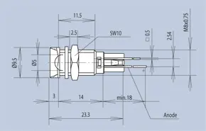 The signal lamps for front panel installation are designed for screw mounting with a recommended installation hole of Ø8mm. The sockets can be supplied with an external or internal reflector. The plug insert is removable. Supplied with washer and hexagonal nut.