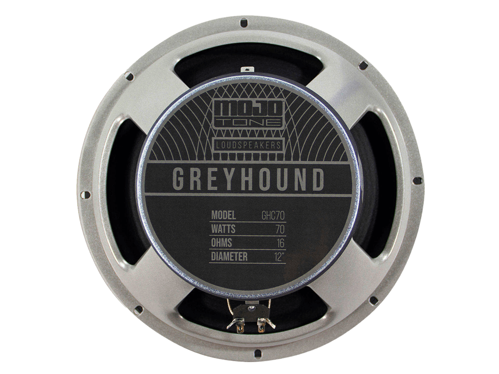 We wanted a new speaker that was in between the British Sound and the American Vintage sound so we came up with the new Greyhound Speaker. During the design process we mainly used a Blackface Twin to test so we think this speaker sounds particularly good in this type of amp as well a Peavey 5150 for high gain. As far as tone goes, the Greyhound is smoother sounding on the top end and upper midrange than a Celestion Vintage 30 but has more punch than a Jensen C12N. It has a great rock tone (specially for mid gain to high gain amplifiers) but stays clean enough for those who don't like too much speaker break-up.