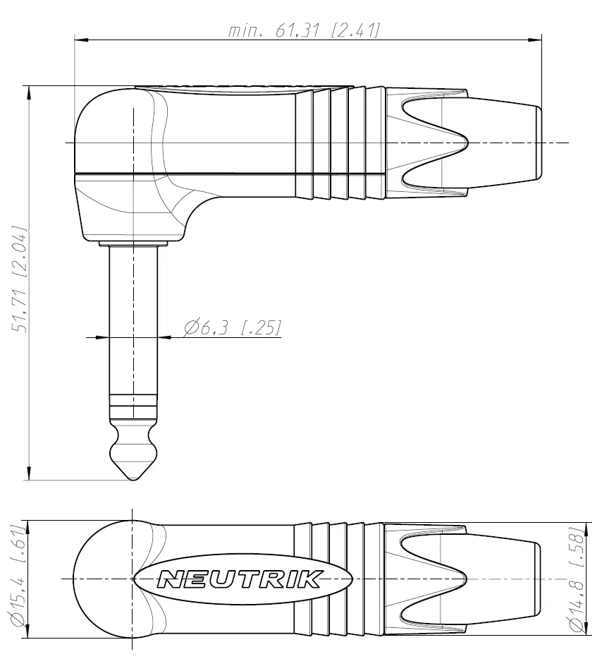 Main page » Components » Jacks & Plugs » Jack 6,3 mm » Neutrik NP2RX - 6,3 mm (1/4") phone plug, right-angle, mono, silver