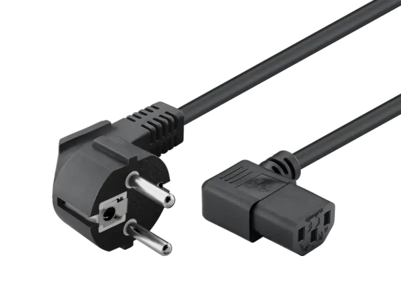 This universally applicable power cable has an angled cold device socket and an angled Schuko plug.