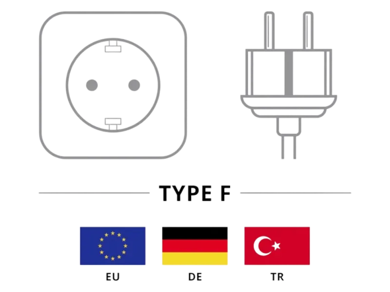 - Connection, Type: Schuko plug Hybrid (Type E/F, CEE 7/7) 90°