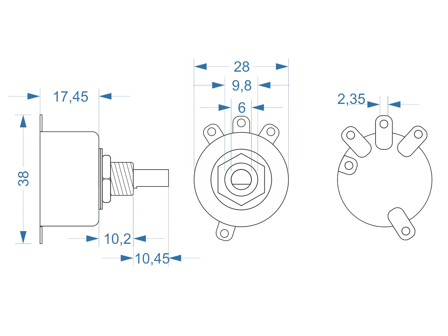 Mobile Preview: Rotary Switch 1 Pol / 3 Pos - 3A@250VAC - Impedance / Voltage Selector