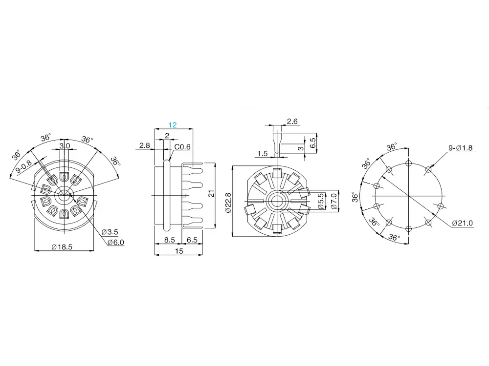 Main page » Components » Sockets & Retainer » Noval Socket » Socket Noval Belton, Print VTB9-PT, black