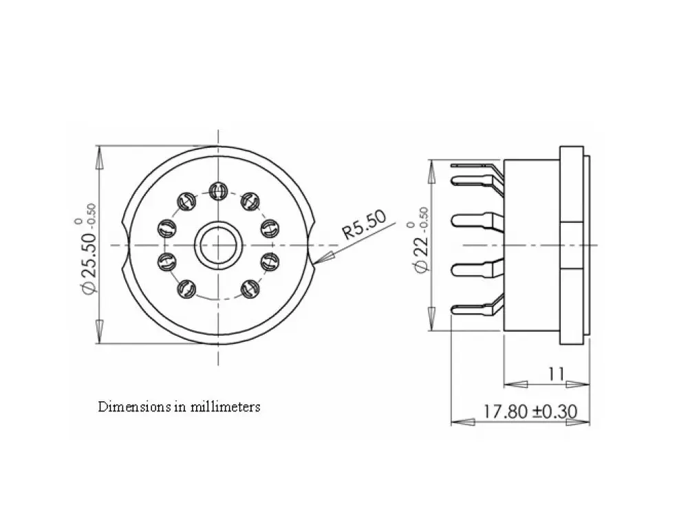 Main page » Components » Sockets & Retainer » Noval Socket » Socket Noval Ceramic PC Mount, Pack of 2