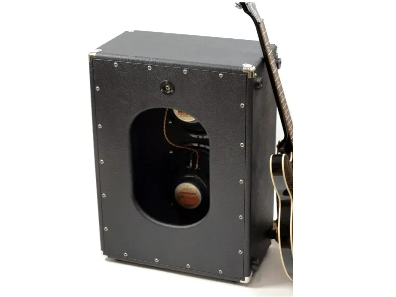 An Open Back cabinets produces a wide tonal range with a rich top end and a strong bass, but the bass response is less controlled than in a closed back cab because the cone of the speaker moves more freely with less control.