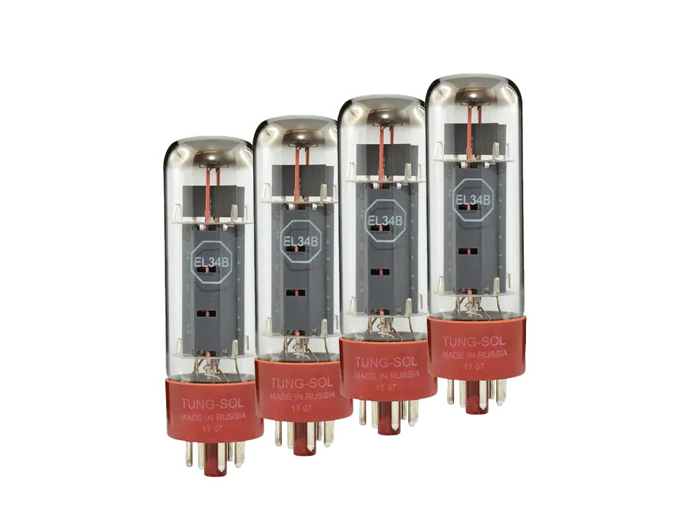 Premium high-voltage power pentode, featuring improved materials and workmanship over the original EL34B. Higher impedance design with increased touch responsiveness.